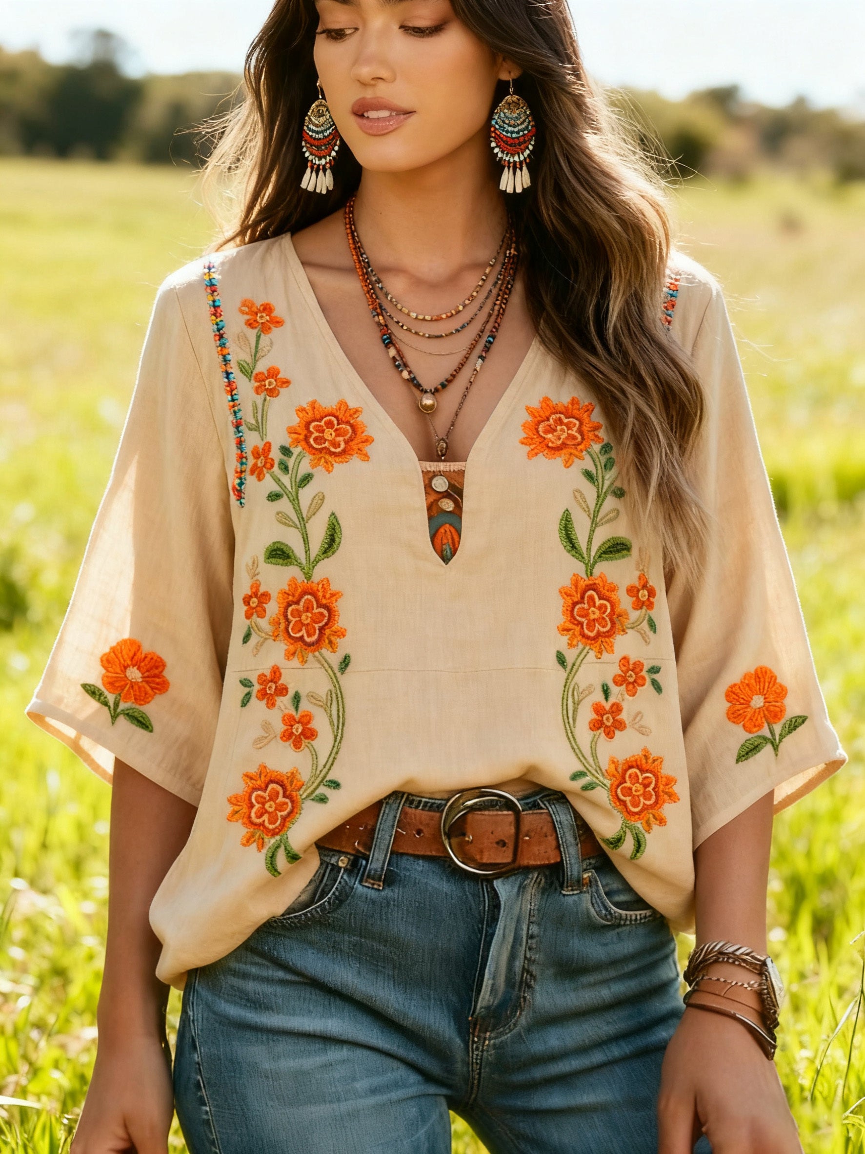 Women's Bohemian Retro Floral T-Shirt
