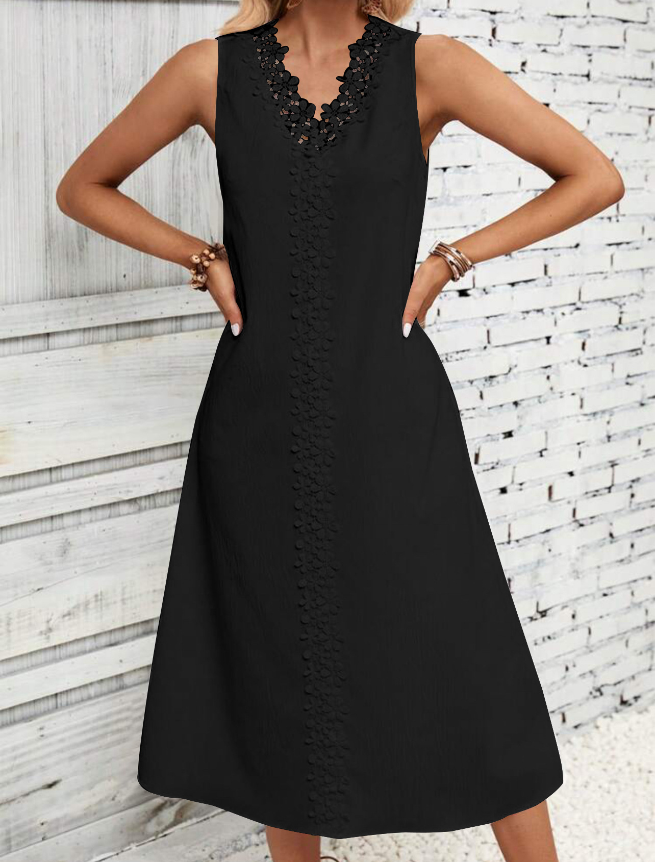 Women's Sleeveless Lace Long Patchwork Dress